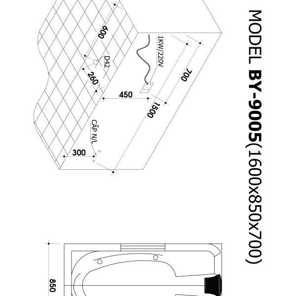 BỒN TẮM MASSAGE ĐƠN BY – 9005M